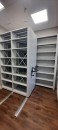Там, где позволяло пространство, были установлены мобильные стеллажи, увеличивающие в 2 раза объём хранимого, вдоль стен были поставлены стационарные стеллажи.
