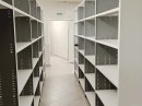 Размеры и расположение стационарных стеллажей адаптировано под сложную геометрию помещения.